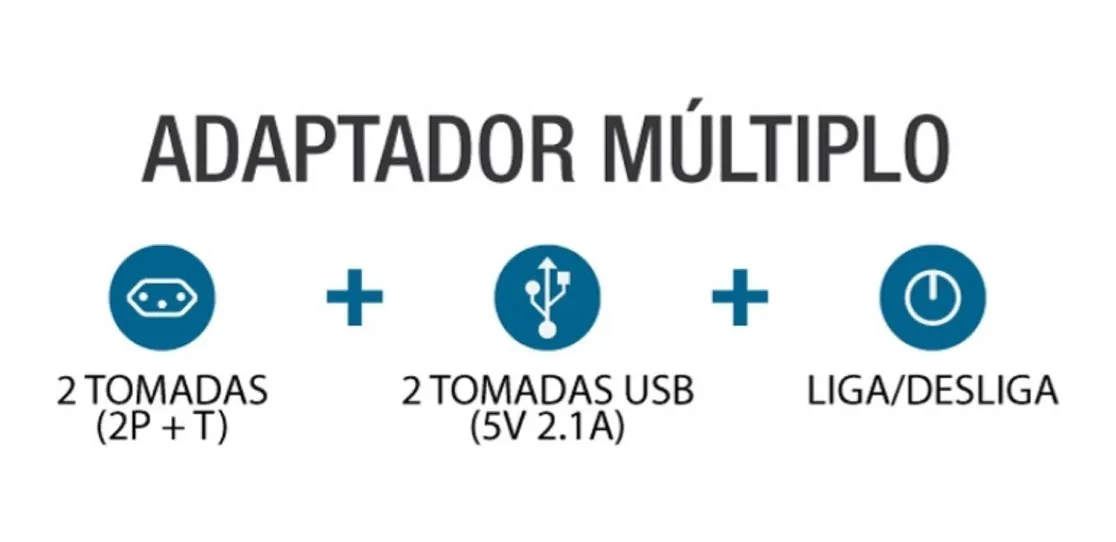 - Conteúdo da embalagem: 01 unidade Adaptador Múltiplo 2T + 2 USB