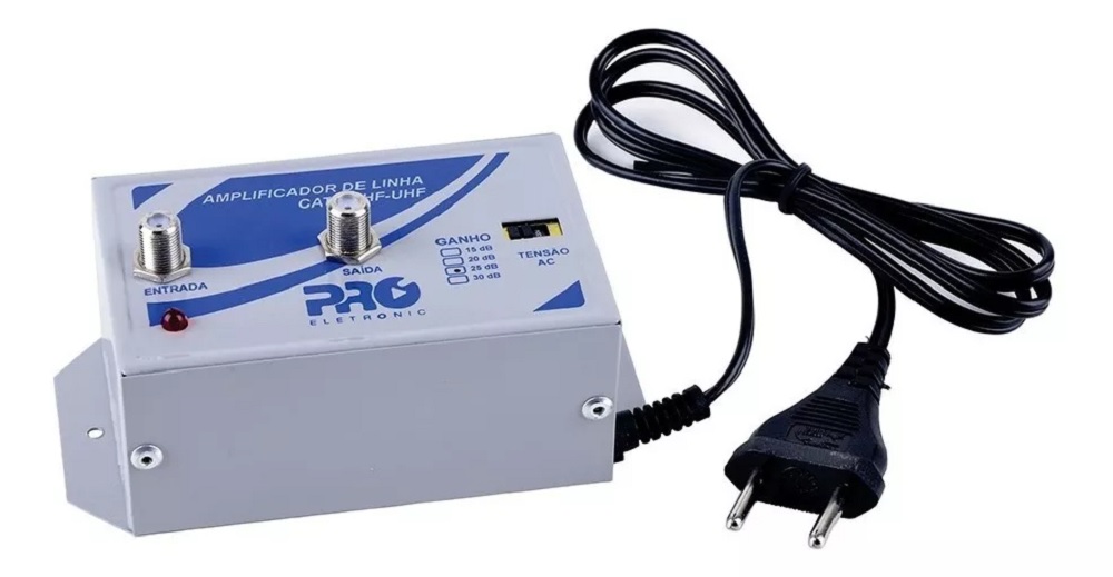 O Amplificador de Linha PQAL-2500G2 da Proeletronic é a solução ideal para melhorar a qualidade da imagem dos canais de TV em residências e apartamentos. Com ganho de 25 dB, ele compensa perdas causadas por conexões, longos cabos coaxiais e divisores, garantindo sinal estável e nítido. Indicado para pequenas instalações ou sistemas coletivos de até 6 andares, possui estrutura metálica robusta, é bivolt e 100% testado, com garantia de fábrica e fabricação nacional.