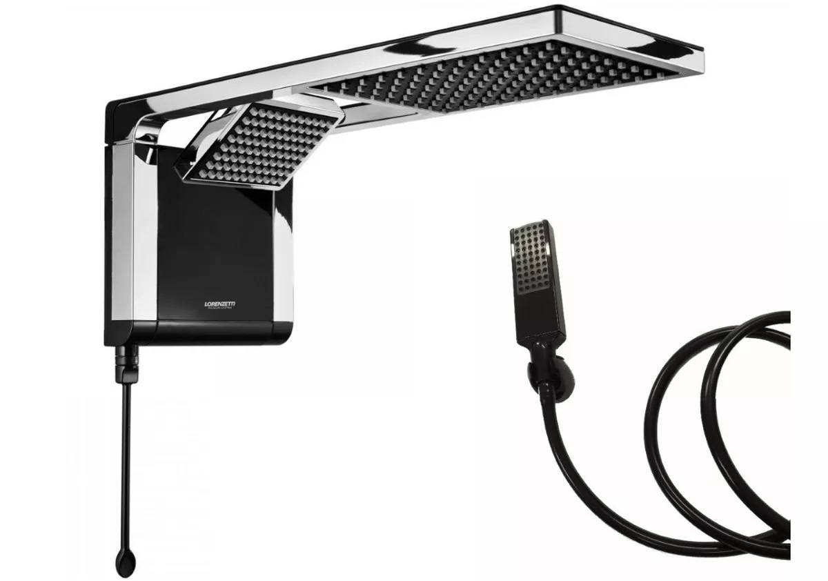 A Ducha Lorenzetti Acqua Duo Ultra Preto e Cromado é a união perfeita entre design sofisticado, inovação e desempenho. Com linhas quadradas e visual moderno semelhante ao das duchas frias, integra ducha manual e chuveiro em um único produto, oferecendo versatilidade e conforto para o seu banho. O chuveiro possui espalhador de grande proporção para um jato espaçado e relaxante, enquanto a ducha manual entrega jato concentrado e direcionável. Com a exclusiva resistência Loren Ultra – primeira resistência plana do mercado – proporciona alta performance, longa durabilidade e troca rápida com cartucho exclusivo. É ideal para quem busca um banho moderno, seguro e eficiente, mesmo em locais com baixa pressão de água.