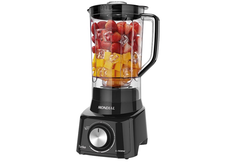 O Liquidificador Turbo L-900 FB da Mondial possui 900W de potência para triturar até os alimentos mais duros e consistentes. E pode soltar a criatividade! Você conta com 5 velocidades e com a função pulsar para preparar sucos, vitaminas, bolos ou qualquer outro alimento com muita facilidade e praticidade. O aparelho conta com um design todo pensado para a sua experiência de uso ser excelente. Além disso, o copo tem capacidade para 2,7L e é resistente a quedas e riscos. Sua montagem rápida e prática também veio para descomplicar os seus dias de Chef.