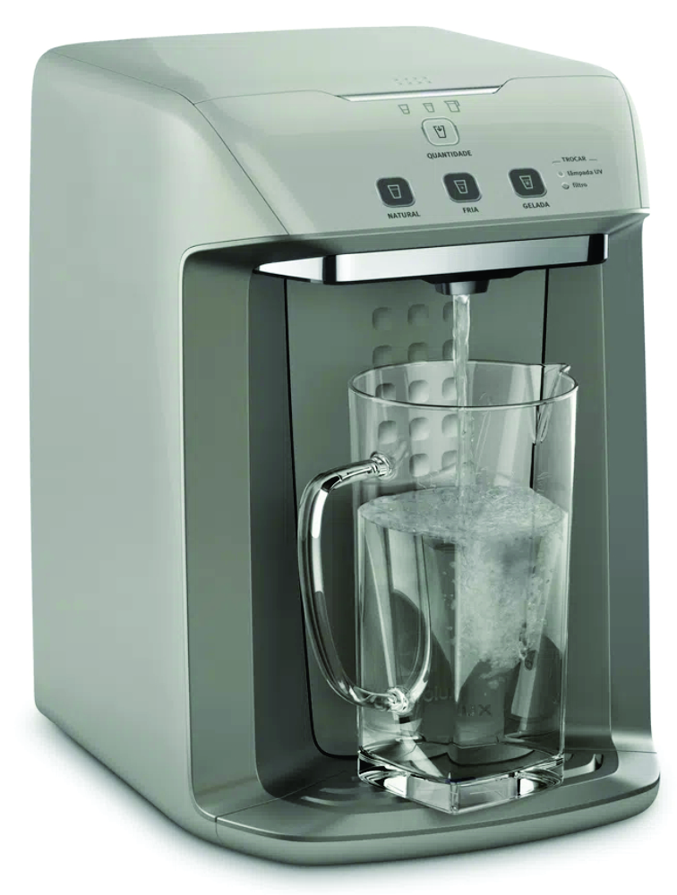 - Estágios de purificação: 3 (carvão ativado, ultrafiltragem e luz UV)