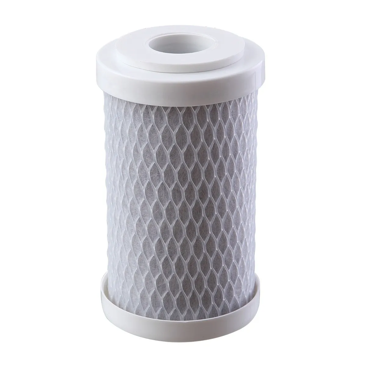 - Carvão ativado com prata coloidal compactado: Reduz gostos e odores desagradáveis da água, inibe a proliferação de bactérias e retém partículas sólidas em uma única etapa de filtragem.