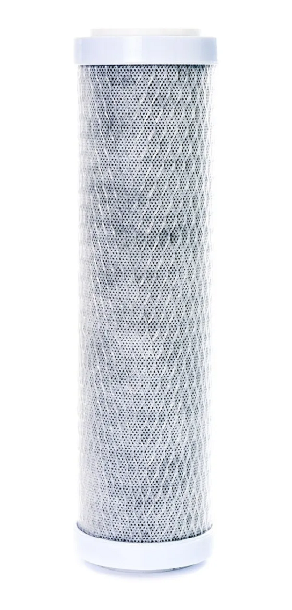 - Carvão ativado com prata coloidal compactado: Reduz gostos e odores desagradáveis da água, inibe a proliferação de bactérias e retém partículas sólidas em uma única etapa de filtragem.